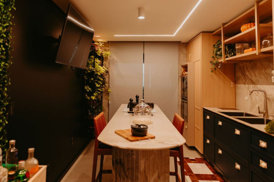 👩🍳 Cozinha 100% equipada com ilha central e eletros de alto padrão (Tramontina);