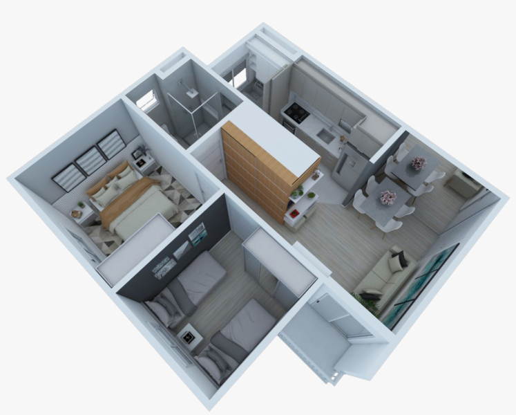• Apartamentos com área privativa de 50,00m², muito bem aproveitados, com fantástico padrão de acabamento, projetados para oferecer máxima eficiência de espaço, maximizando o conforto.