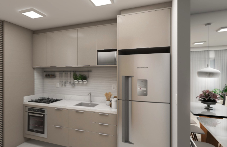 • Unidades com dois dormitórios, salas de jantar e estar integradas, sacada, cozinha com churrasqueira e lavanderia, banheiro e vaga de garagem.