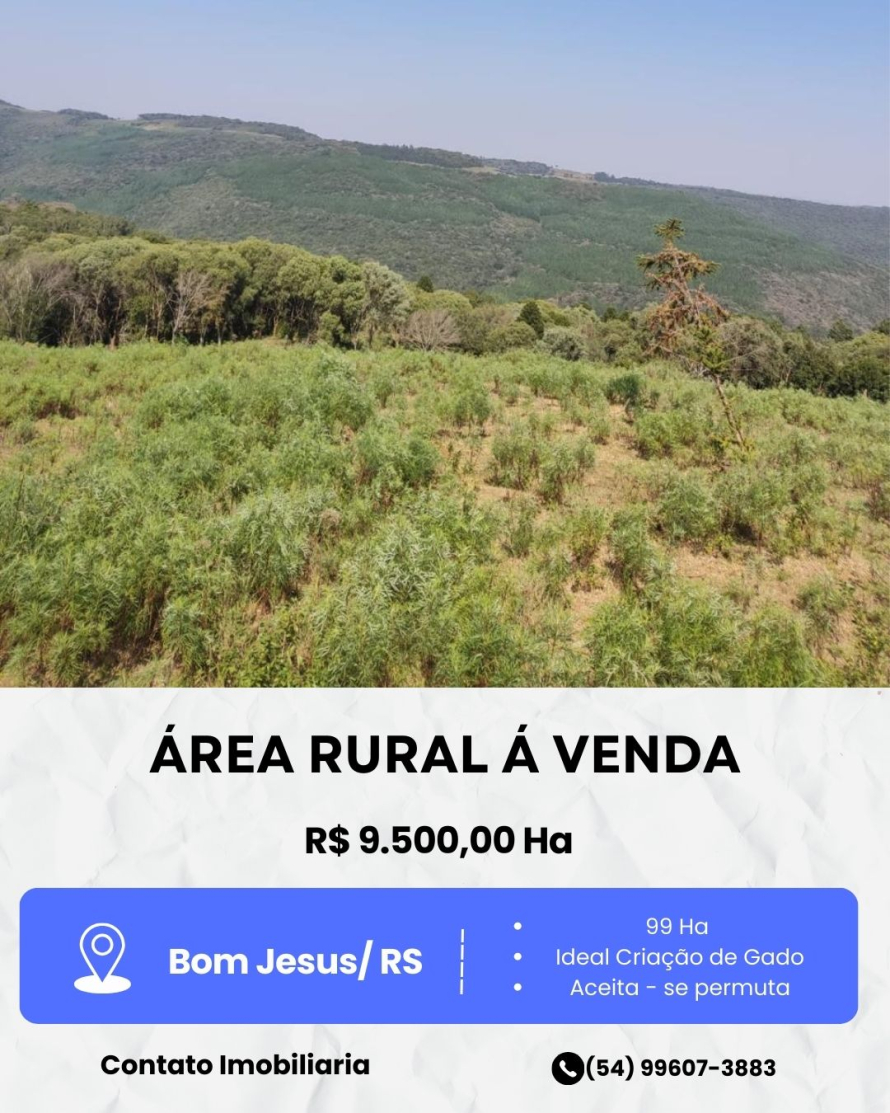DETALHES: ÁREA À VENDA 2 Dormitório(s), 1 Banheiro(s), 1 Sala(s), Terreno: 990000m² 95290-000, Interior, Bom Jesus, RS, BR