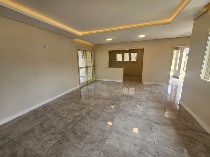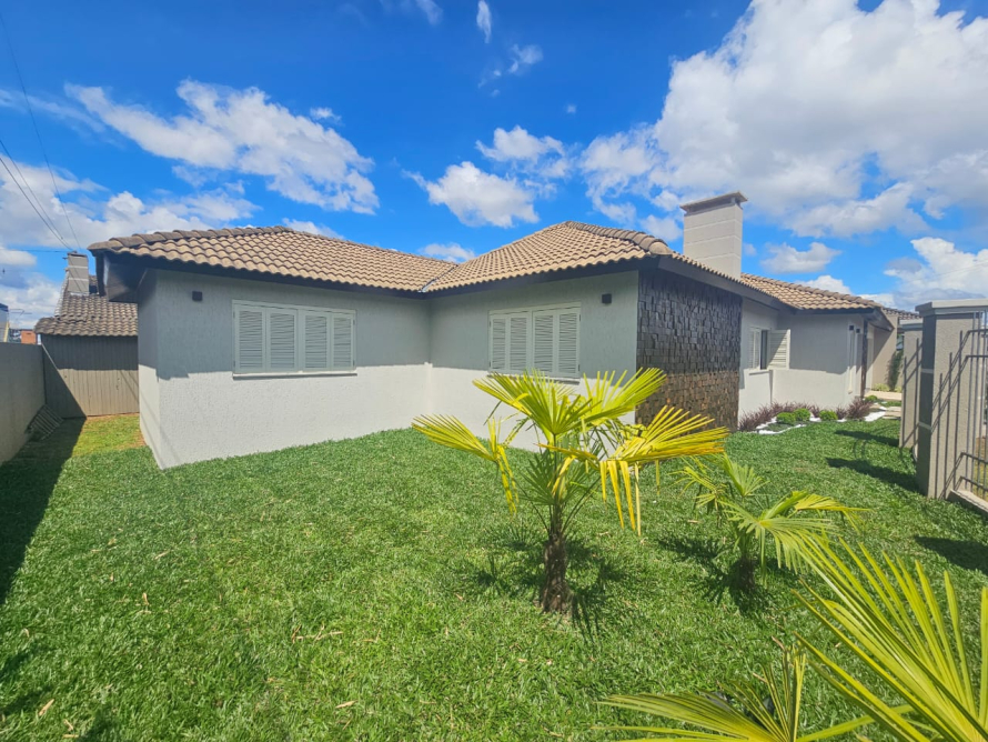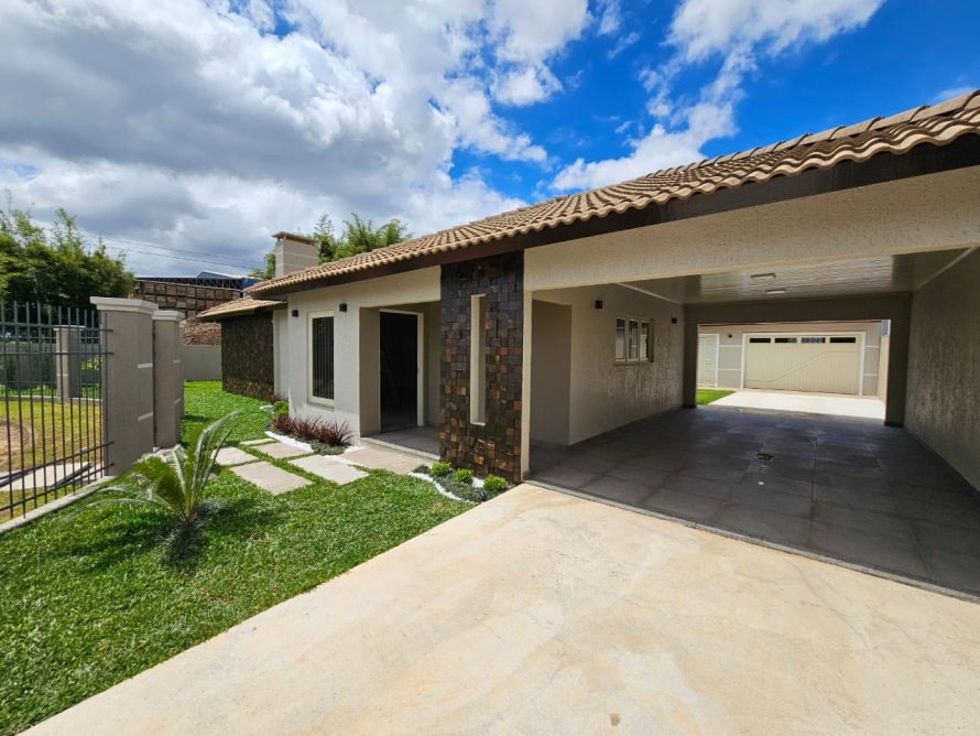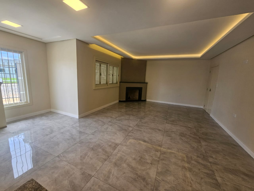 3 dormitórios sendo uma suíte com closet, banheiro social, sala de estar e jantar com lareira, cozinha e copa integradas. 2 vagas de garagem. Casa automatizada, com aberturas em itaúba, porcelanato premium, iluminação embutida e acabamentos em gesso.