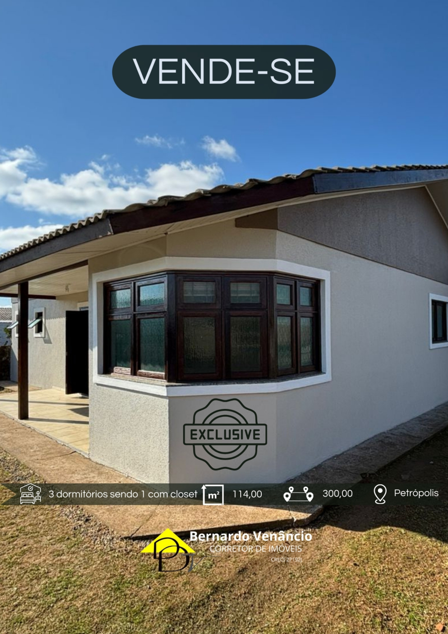DETALHES: 🚀Essa é uma excelente oportunidade! A residência possui características muito atrativas, como a🛌 suíte com closet e a área destinada à🔥 churrasqueira. 📌O bairro Petrópolis, em Vacaria, é reconhecido por ser um ótimo lugar para se morar. Se você precisar de mais detalhes sobre a casa ou sobre a localização, estou aqui para ajudar!