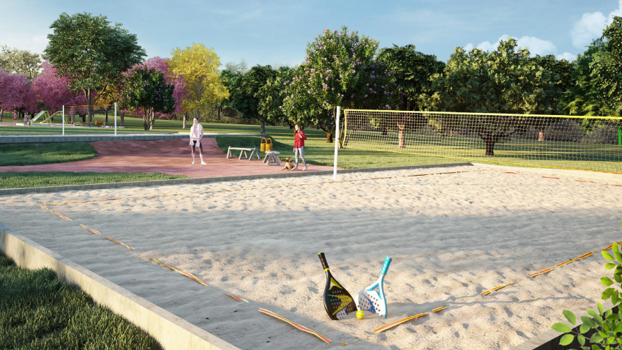 • Quadras de Beach Tennis, Praças Multiuso, Playground