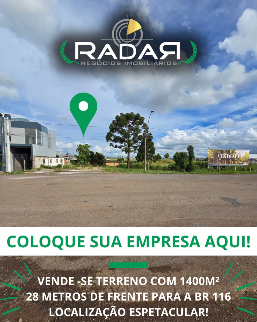 Terreno com 1.400m² (28m de frente x 50m de profundidade), situado de frente para a BR-116, em uma área de altíssima visibilidade e fácil acesso.