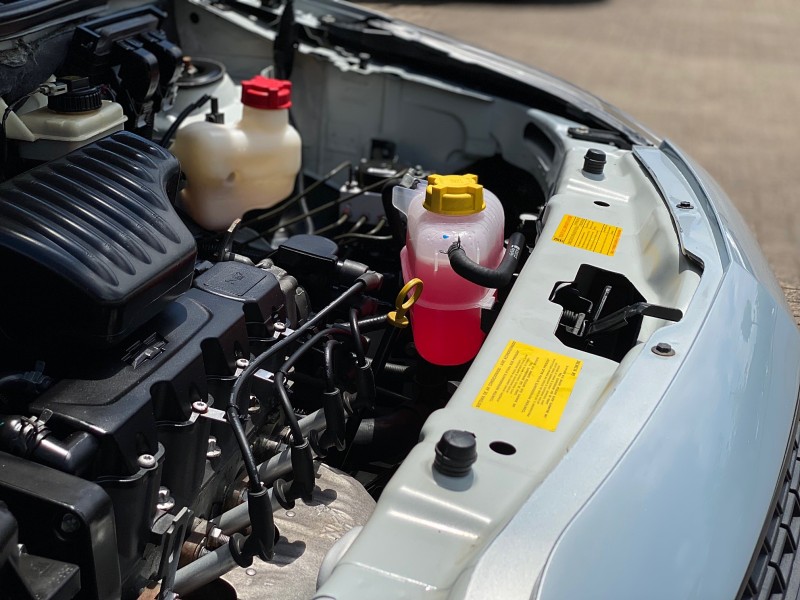 Fluido do radiador novo com aditivo rosa.